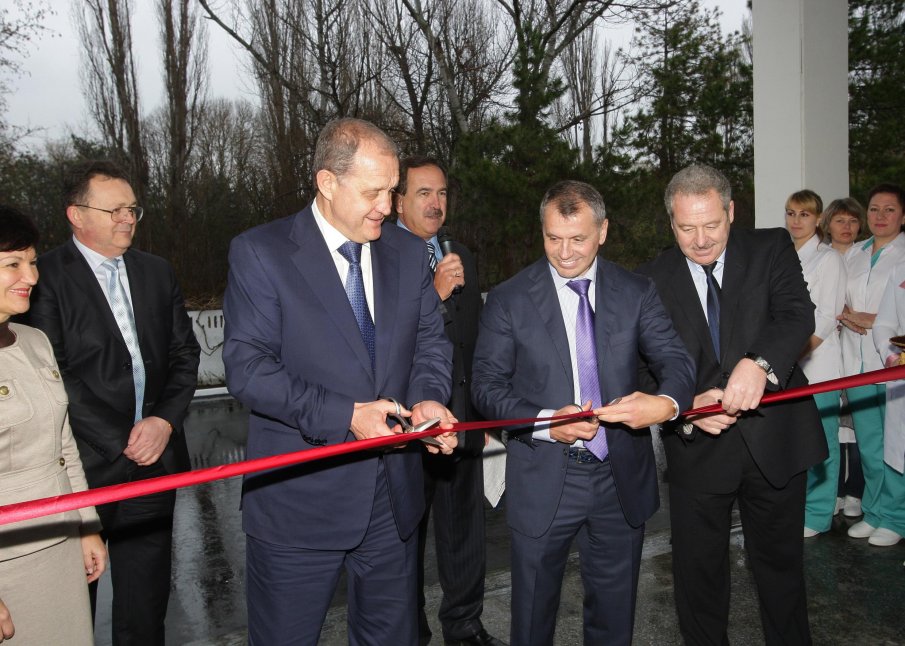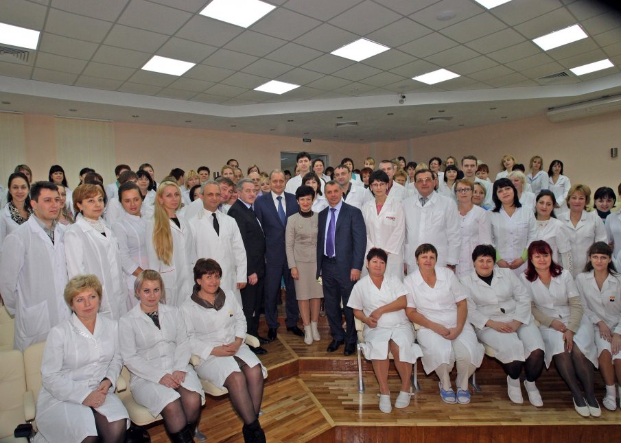 Chairman of the Council of Ministers of Crimea Anatoly Mogilev, Chairman of the Verkhovna Rada of the Autonomous Republic of Crimea Vladimir Konstantinov and Minister of Healthcare of Crimea Alexander Kanevsky and the medical staff of the neonatal center