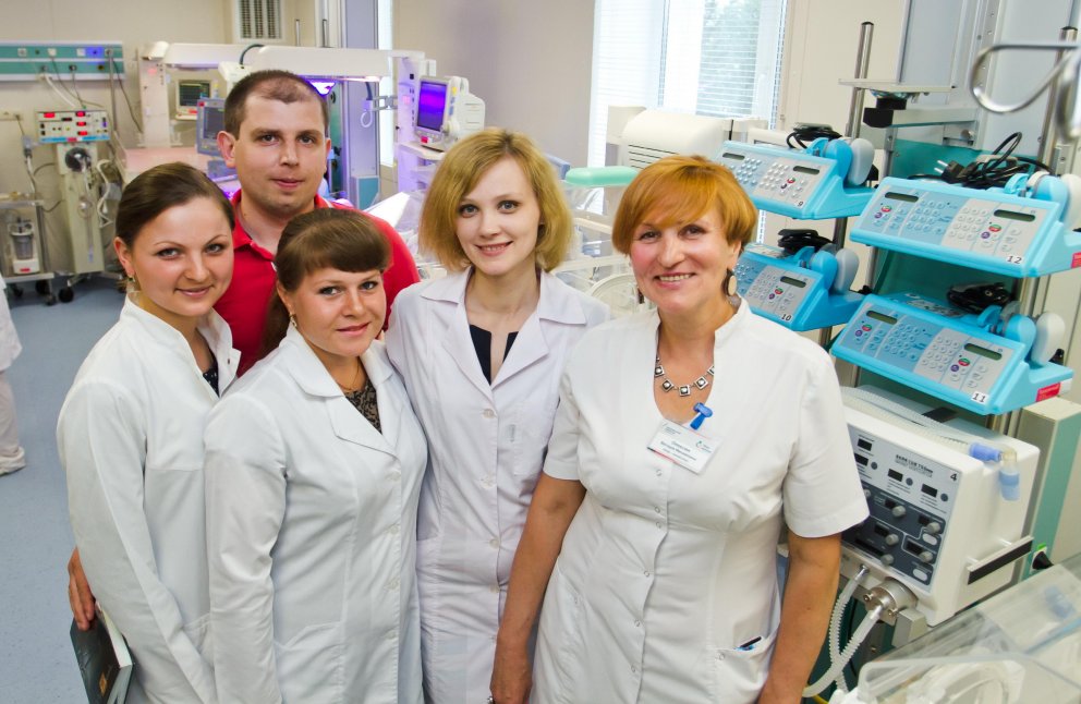 The team of doctors and nurses of intensive care and newborn care departments