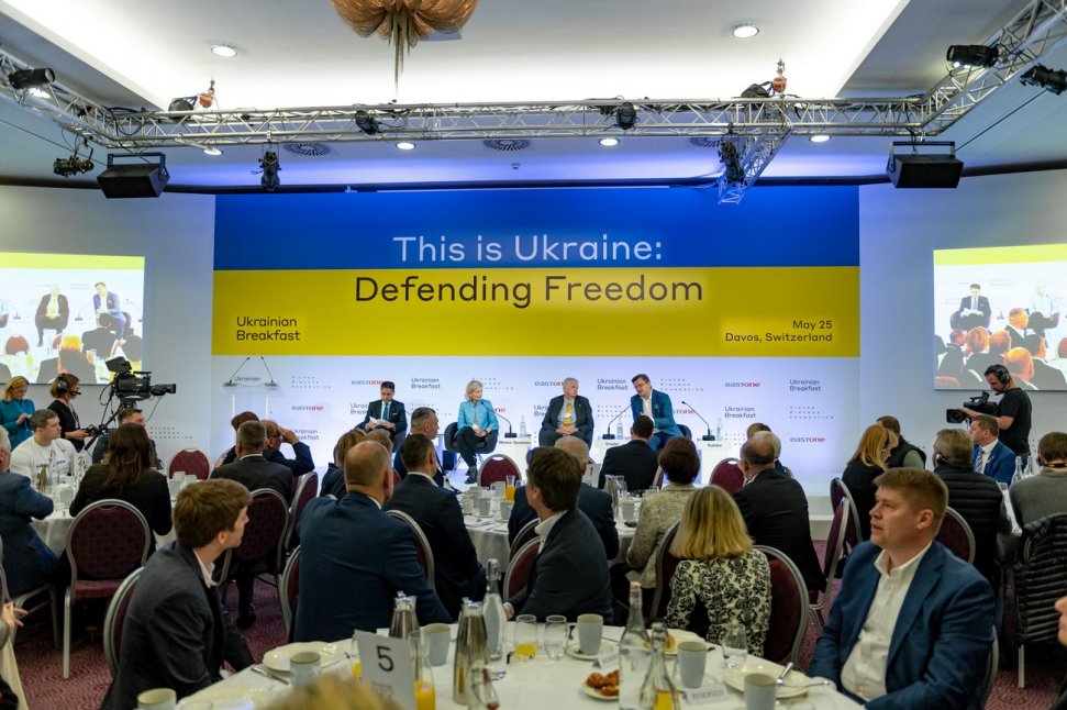 President of Ukraine Volodymyr Zelenskyy address during Davos Ukrainian Breakfast Discussion