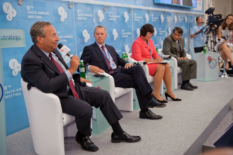 Larry Summers, Jürgen Fitschen, Iryna Akimova and Suresh P. Prabhu