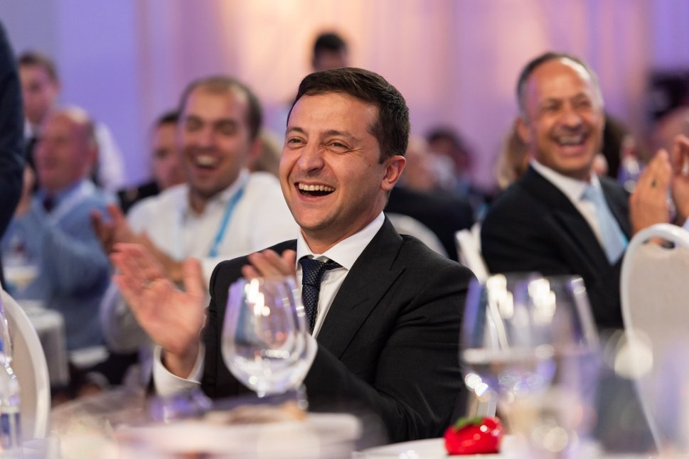 Volodymyr Zelenskyy, President of Ukraine with members "Vechirniy Kvartal"