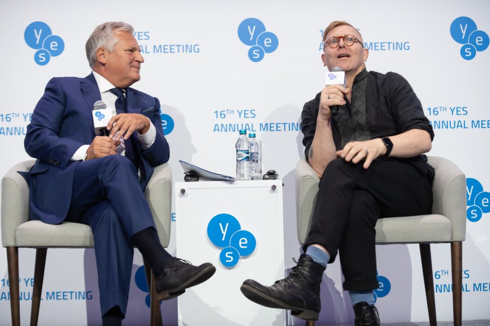 Aleksander Kwasniewski, President of Poland (1995-2005), Chairman of the YES Board with Jon Gnarr Comedian, Artist and Writer, Mayor of Reykjavik (2010-2014)