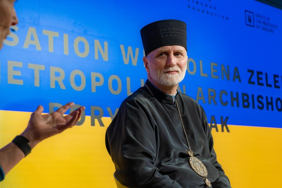 Matthew Kaminski, Editor-in-Chief, Politico; Nataliya Gumeniuk, Founder, Public Interest Journalism Lab; Co-Founder & Chair, NGO Hromadske; Borys Gudziak, Metropolitan Archbishop of Philadelphia for Ukrainian Catholics in the United States and President, Ukrainian Catholic University