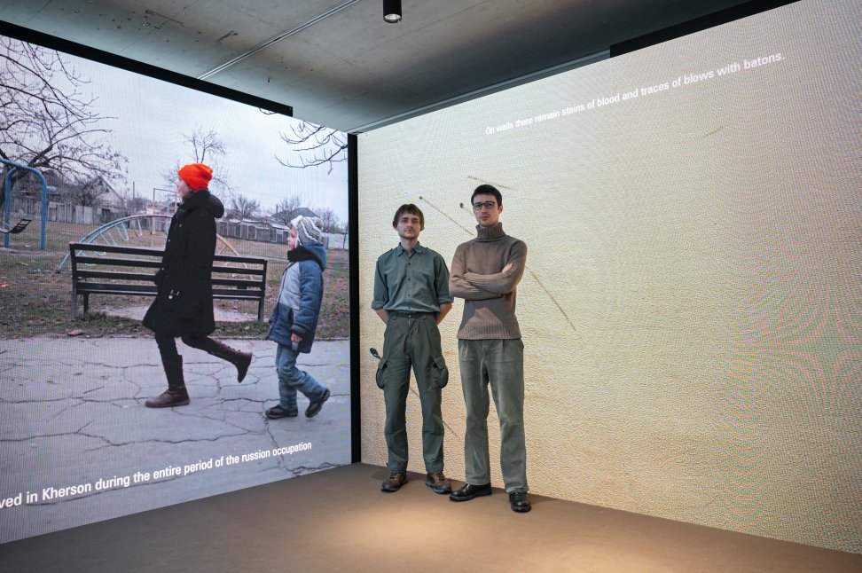 Björn Geldhof, Artistic Director of the PinchukArtCentre, and Illia Samoilenko, Ukrainian serviceman, intelligence officer of the Azov Regiment of the National Guard of Ukraine, participant of the Russian-Ukrainian war