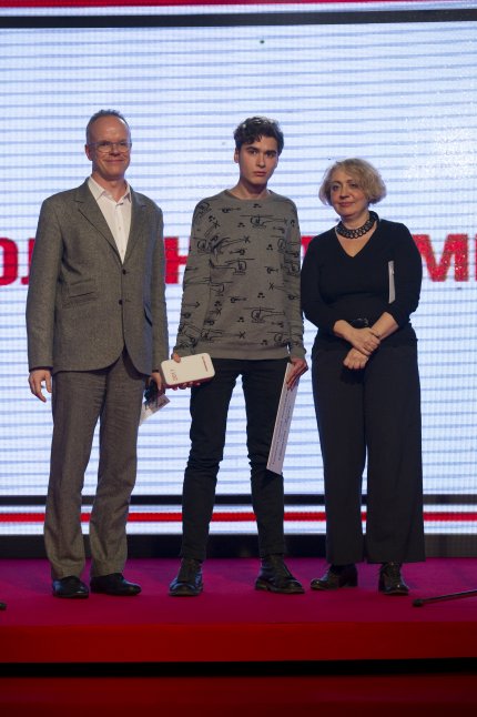 Hans Ulrich Obrist, Mykyta Kadan, The winner of the Main Prize, and Ekaterina Degot