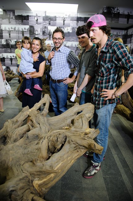 Ai Weiwei: Rooted Upon, 2009 - 32 pieces of tree trunks, and Fairytale, 2007 - 535 b/w prints