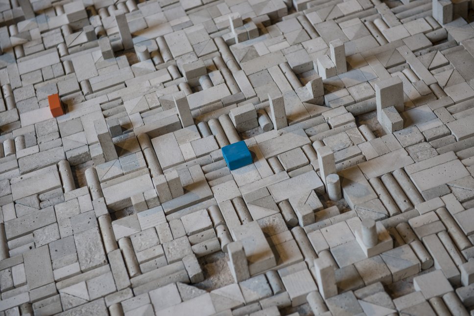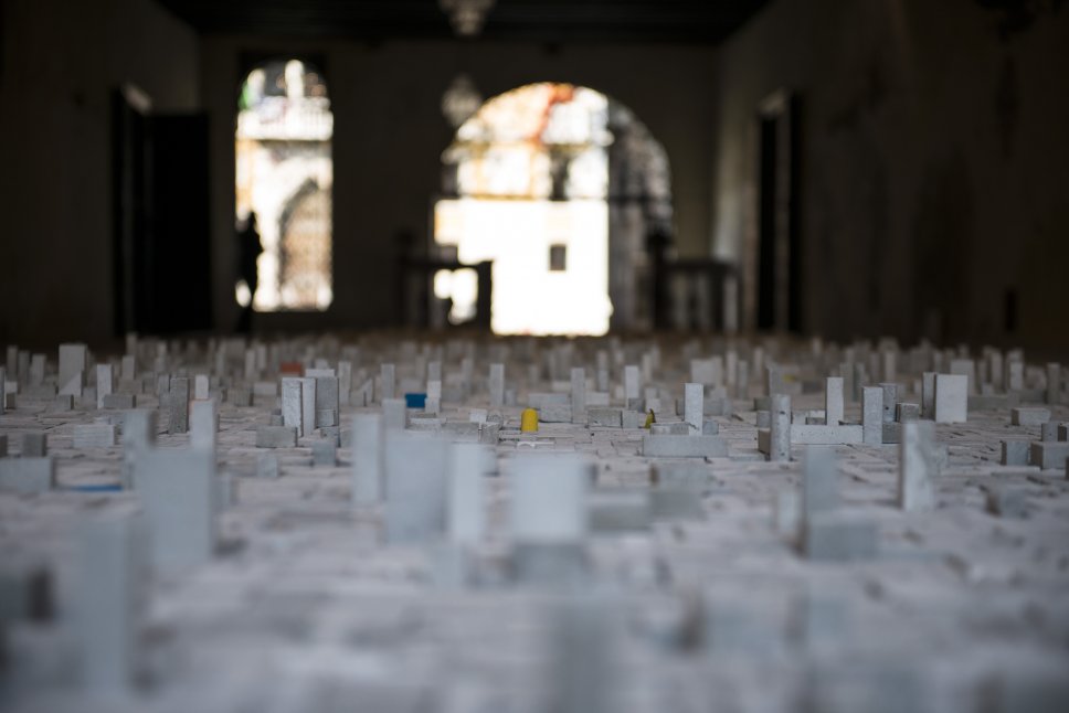 Rayyane Tabet, Architecture Lessons, 2012. From the series "Five Distant Memories: The Suitcase, The Room, The Toys, The Boat and Maradona". Concrete casts of a wood toy block set.