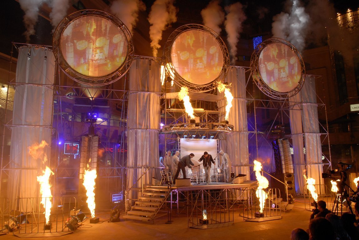 Outdoor screens show what\'s inside the Wave UFO installation
