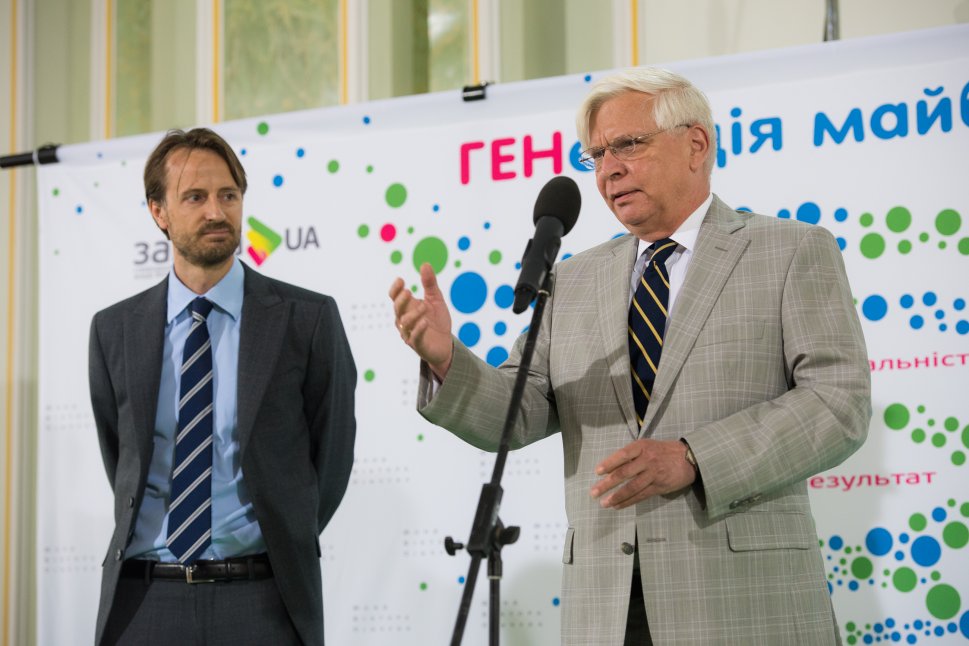 Victor Pinchuk, founder of educational programs "Zavtra.UA" and "World Wide Studies", Tony Blair, Prime Minister of the United Kingdom (1997-2007) and Elizabeth Yas'ko, scholar of "WorldWideStudies" programm